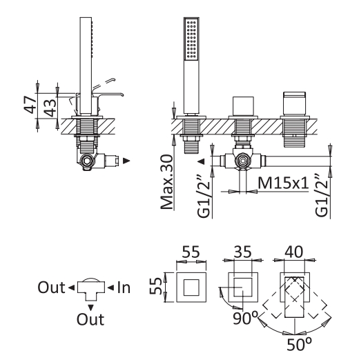Смеситель врезной TN-SWG 024 Cobra на 4 отверст. 6029 1 Marka